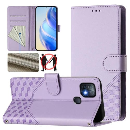 Funda de Cuero Rfid con Relieve en Panal para Infinix Hot 10I (Morado Claro)