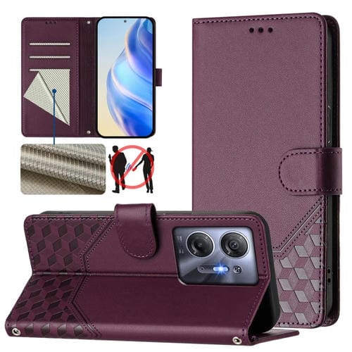 Funda de Cuero Rfid con Relieve en Panal para Infinix Hot 30 5G (Violeta)