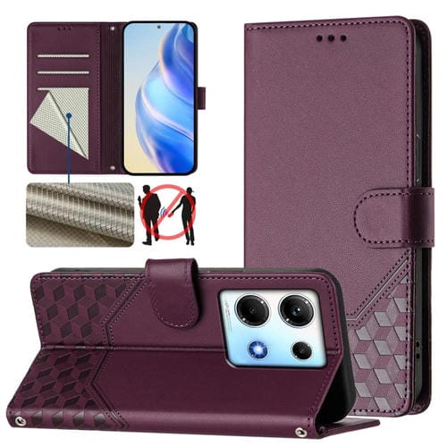 Funda de Cuero Rfid con Relieve en Panal para Infinix Note 30 5G/4G (Violeta)