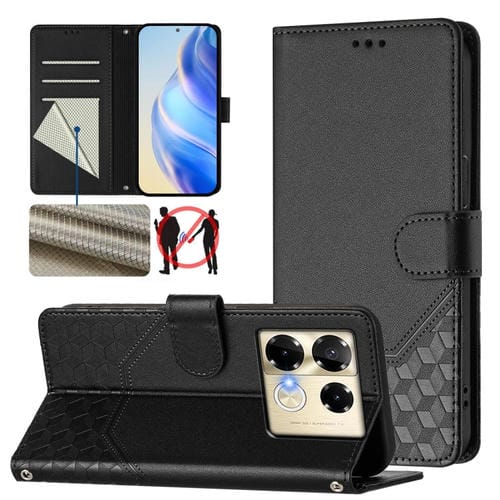 Funda de Cuero Rfid con Relieve en Panal para Infinix Note 40 Pro 5G/4G (Negra)