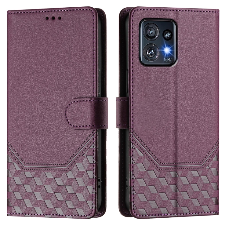 Funda de Cuero Rfid con Relieve en Panal para Motorola Edge+ 2023/40 Pro (Violeta)
