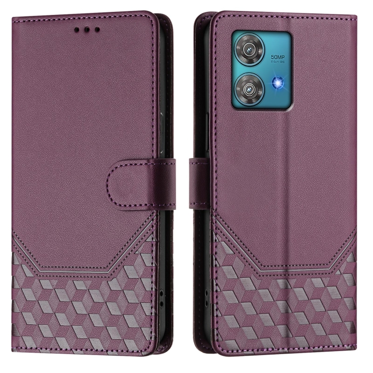 Funda de Cuero Rfid con Relieve en Panal para Motorola Edge 40 Neo 5G (Violeta)