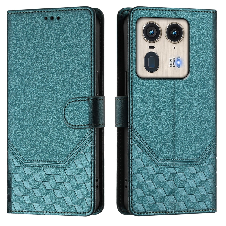 Funda de Cuero Rfid con Relieve en Panal para Motorola Edge 50 Ultra/X50 Ultra (Verde Pavo Real)