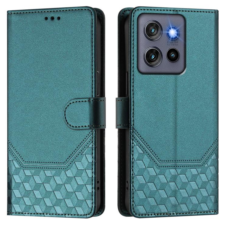 Funda de Cuero Rfid con Relieve en Panal para Motorola Moto G Stylus 5G (2025) (Verde Pavo Real)