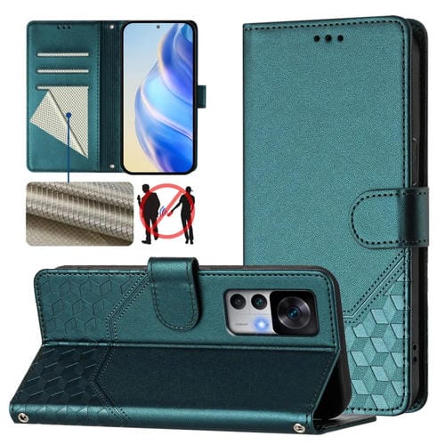 Funda de Cuero Rfid con Relieve En Panal para Redmi K50 Ultra (Verde Pavo Real)