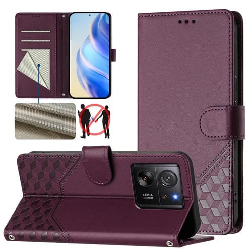 Funda de Cuero Rfid con Relieve En Panal para Redmi K60 Ultra (Violeta)