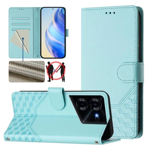 Funda de Cuero Rfid con Relieve en Panal para Tecno Pova 5 (Verde Menta)