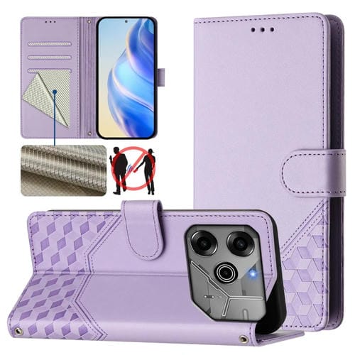 Funda de Cuero Rfid con Relieve en Panal para Tecno Spark Go 2021 (Morado Claro)