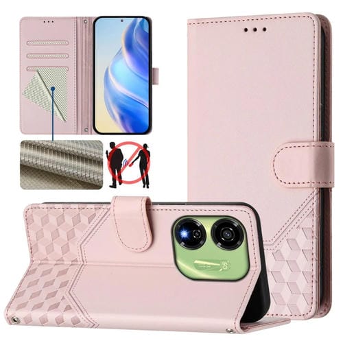 Funda de Cuero Rfid con Relieve en Panal para Teléfono Itel P55 5G (Rosa)
