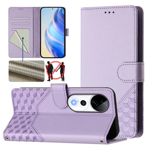 Funda de Cuero Rfid con Relieve En Panal para Vivo S19 Pro (Morado Claro)