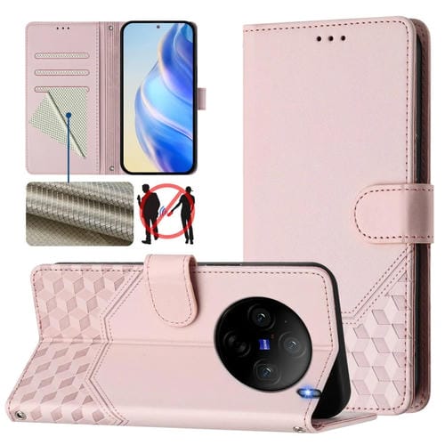 Funda de Cuero Rfid con Relieve En Panal para Vivo X100S 5G (Rosa)