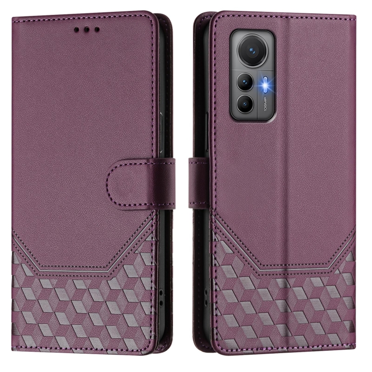 Funda de Cuero Rfid con Relieve En Panal para Xiaomi 12 Lite (Violeta)