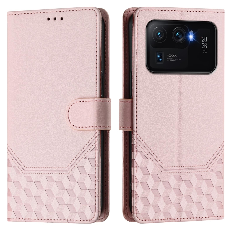 Funda de Cuero Rfid con Relieve En Panal para Xiaomi Mi 11 Ultra (Rosa)