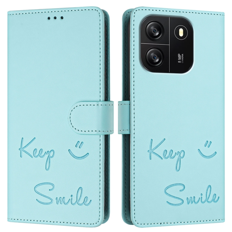 Funda de Cuero Rfid con Relieve Sonriente para BlackView Wave 6C (Verde Menta)