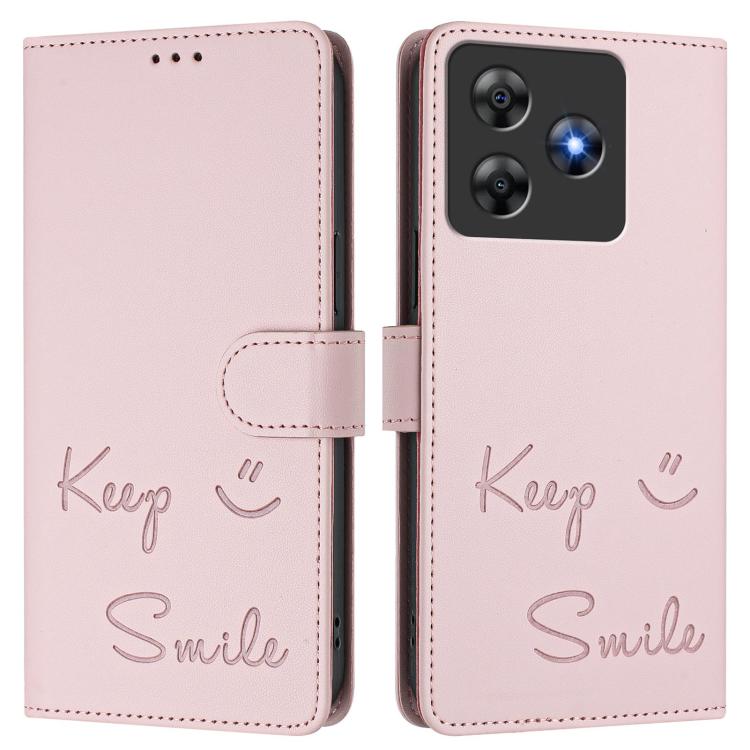 Funda de Cuero Rfid con Relieve Sonriente para BlackView Wave 8C (Rosa)