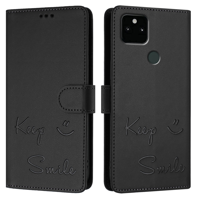 Funda de Cuero Rfid con Relieve Sonriente para Google Pixel 5A (Negra)
