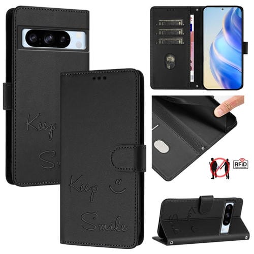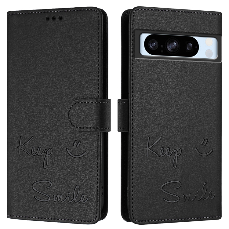 Funda de Cuero Rfid con Relieve Sonriente para Google Pixel 8 Pro (Negra)