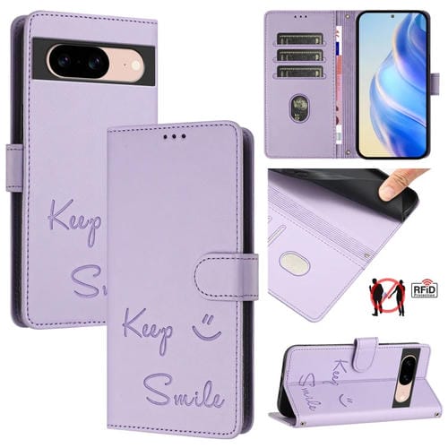 Funda de Cuero Rfid con Relieve Sonriente para Google Pixel 8A (Morado Claro)