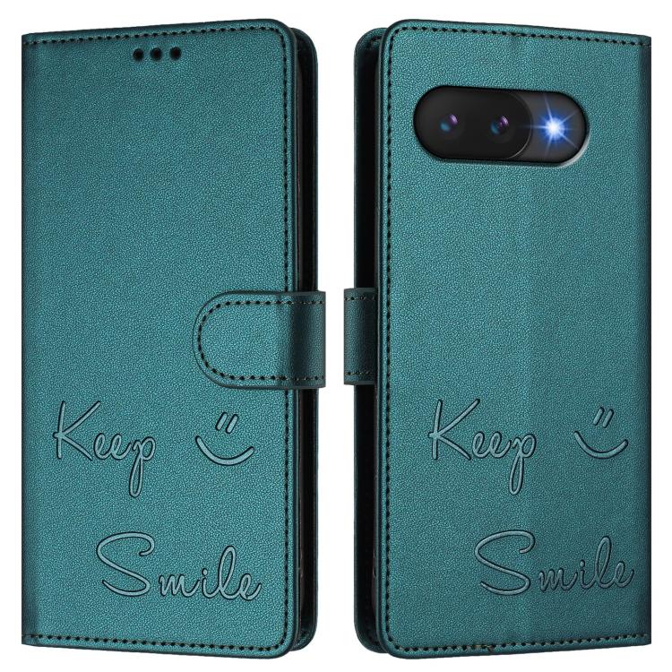 Funda de Cuero Rfid con Relieve Sonriente para Google Pixel 9A (Verde Pavo Real)