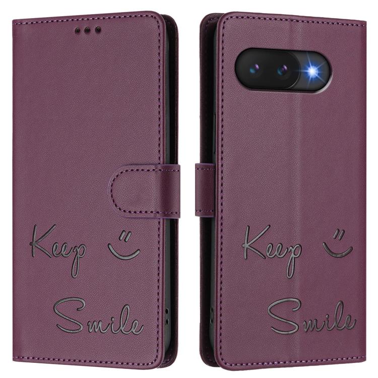 Funda de Cuero Rfid con Relieve Sonriente para Google Pixel 9A (Violeta)