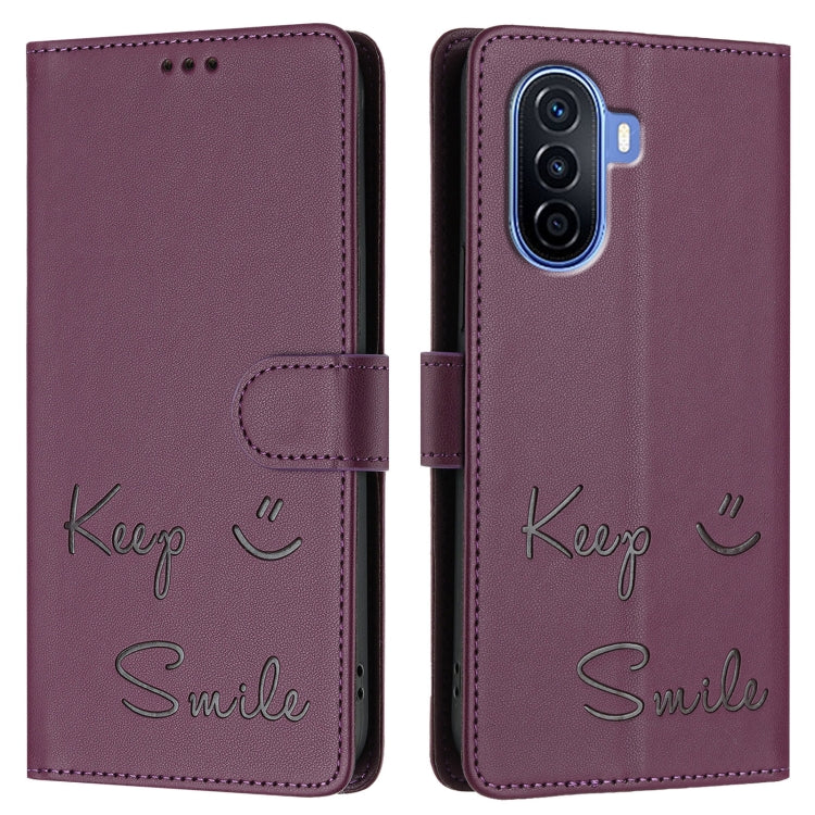 Funda de Cuero Rfid para Huawei Enjoy 50 4G con Relieve Sonriente (Violeta)