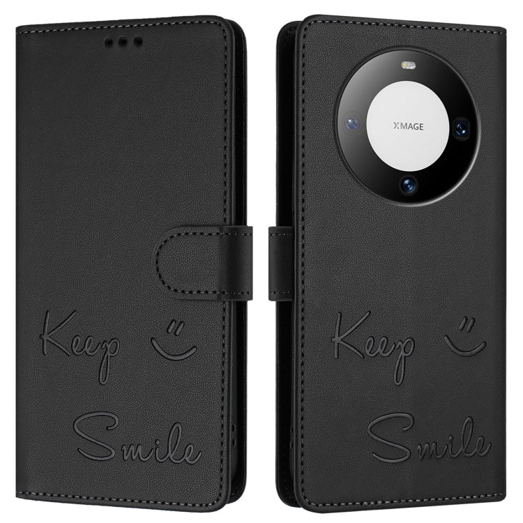 Funda de Cuero Rfid con Relieve Sonriente para Huawei Mate 60 (Negra)