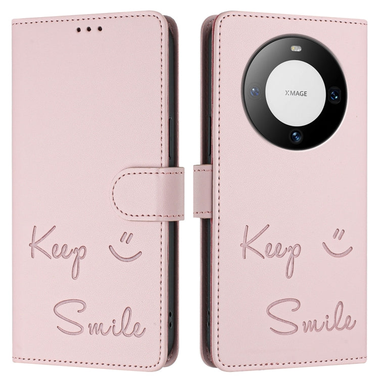 Funda de Cuero Rfid para Huawei Mate 60 con Relieve Sonriente (Rosa)