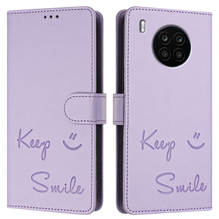 Funda de Cuero Rfid con Relieve Sonriente para Huawei Nova 8I (Morado Claro)