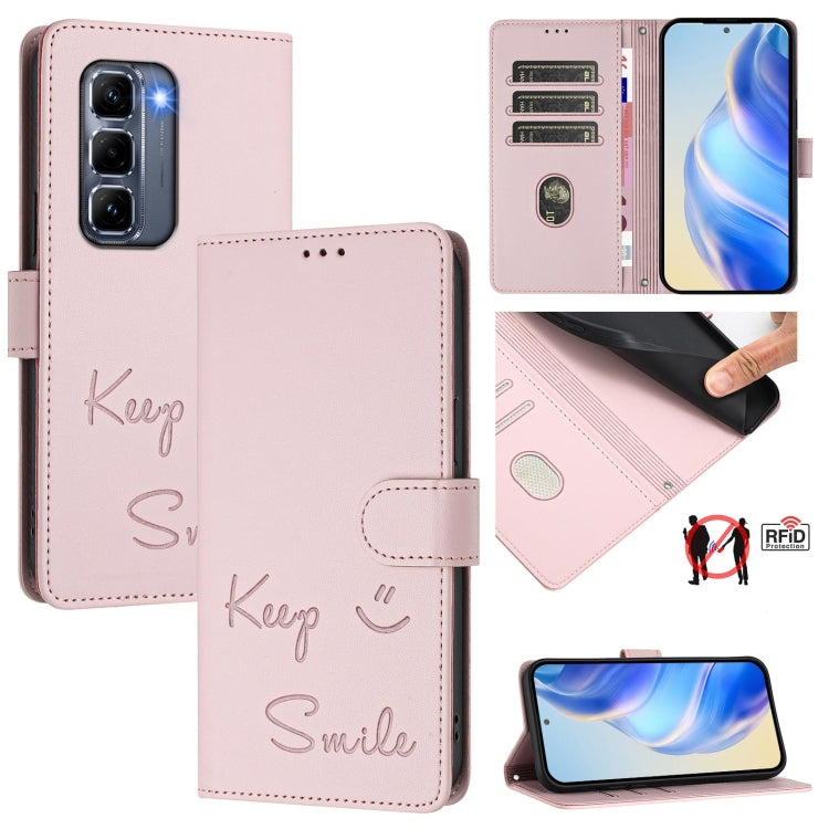 Funda de Cuero Rfid con Relieve Sonriente para Infinix Hot 50 Pro+ 4G (Rosa)