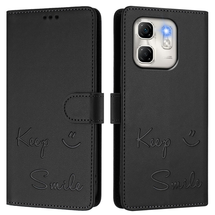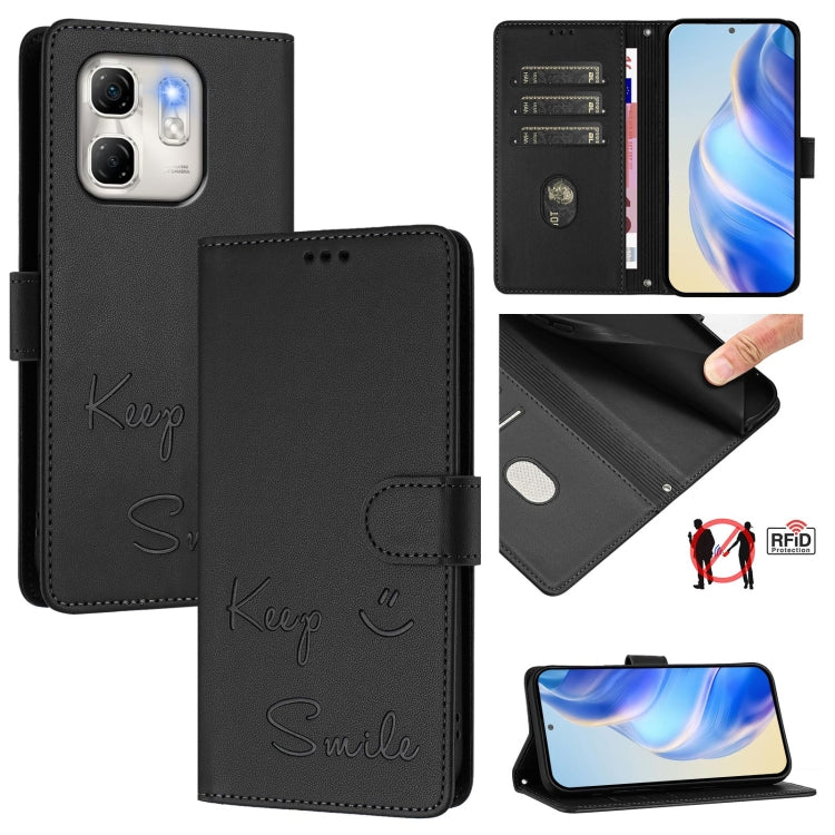 Funda de Cuero RFID con Relieve Sonriente para Infinix Hot 50I 5G y Smart 9 4G (Negra)