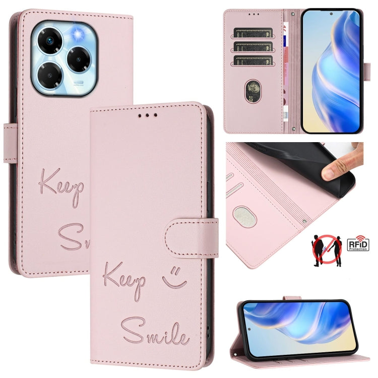 Funda de Cuero Rfid con Relieve Sonriente para Infinix Note 40X 5G (Rosa)