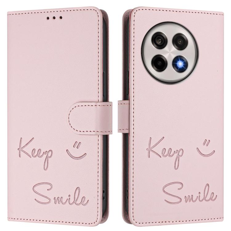 Funda de Cuero Rfid con Relieve Sonriente para OnePlus 13R/Ace 5 Pro 5G (Rosa)