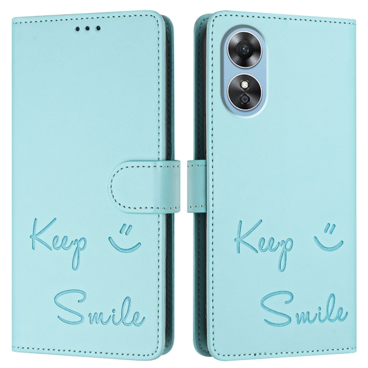 Funda de Cuero Rfid con Relieve Sonriente para Oppo A17 4G Global/A17K (Verde Menta)