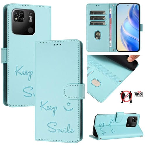 Funda de Cuero Rfid con Relieve Sonriente para Redmi 10A/9C (Verde Menta)