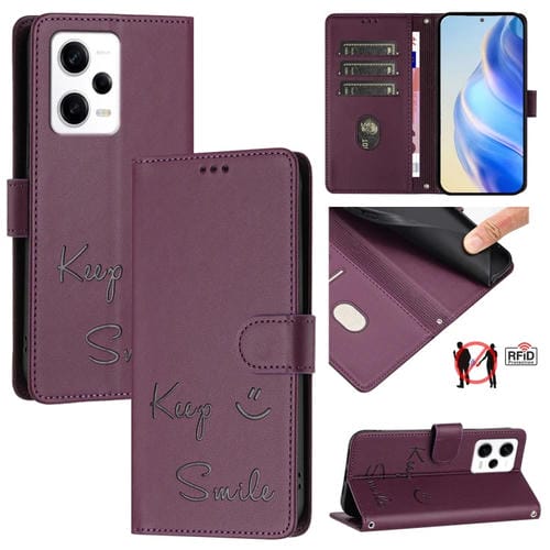 Funda de Cuero Rfid con Relieve Sonriente para Redmi Note 12 Pro+ 5G Global/India (Violeta)