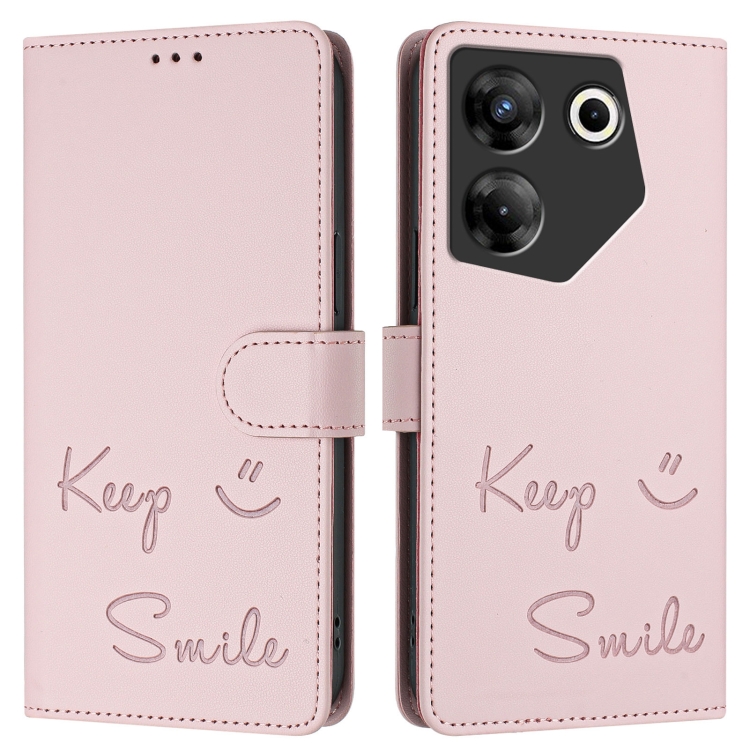 Funda de Cuero Rfid con Relieve Sonriente para Tecno Camon 20 Pro 5G (Rosa)