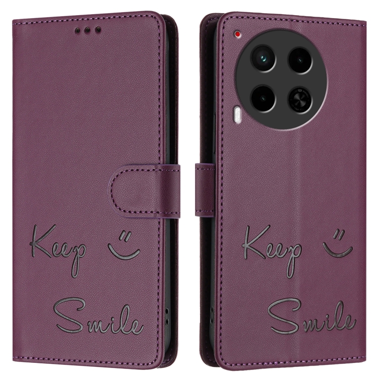 Funda de Cuero Rfid con Relieve Sonriente para Tecno Camon 30 5G/4G (Violeta)