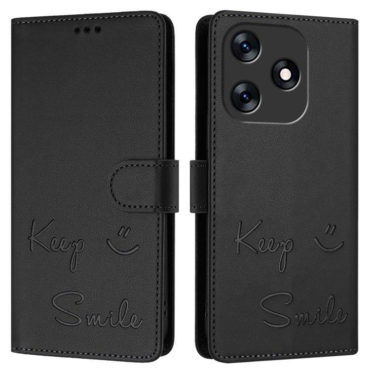 Funda de Cuero RFID con Relieve Sonriente para Tecno Spark 10 4G (Negra)