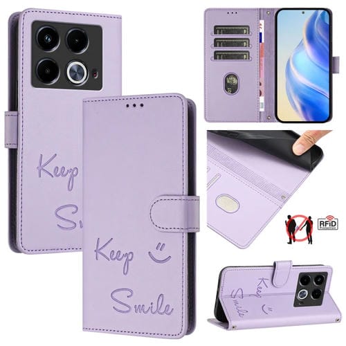 Funda de Cuero Rfid para Teléfono Infinix Note 40 5G con Relieve Sonriente (Morado Claro)