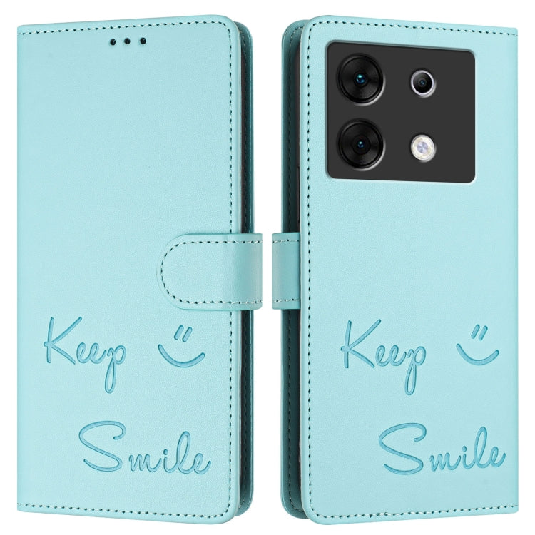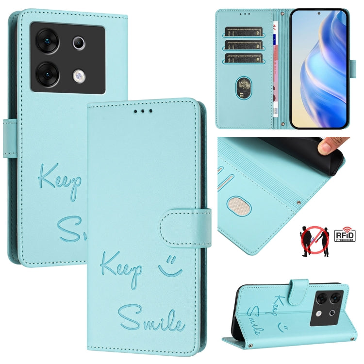 Funda de Cuero Rfid con Relieve Sonriente para Teléfono Infinix Zero 30 5G (Verde Menta)