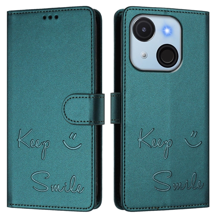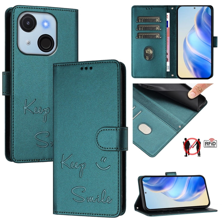 Funda de Cuero Rfid con Relieve Sonriente para Teléfono Itel A50C (Verde Pavo Real)