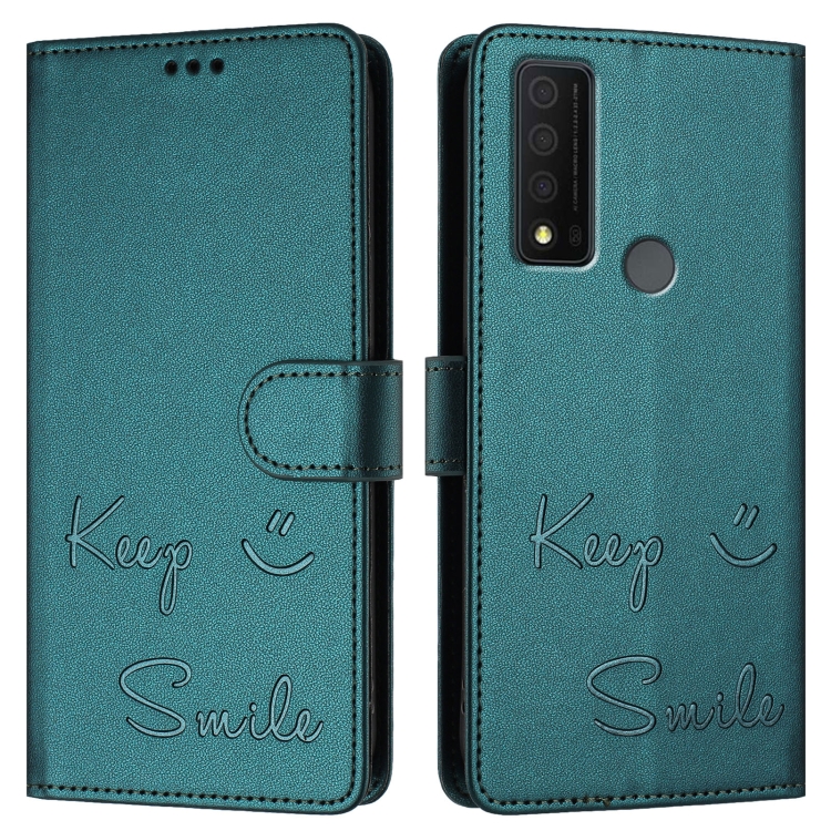 Funda Cuero Rfid TCL 30 Xe 5G con Relieve Sonriente (Verde Pavo Real)