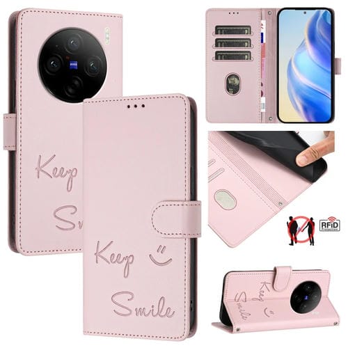 Funda de Cuero Rfid con Relieve Sonriente para Vivo X100 (Rosa)