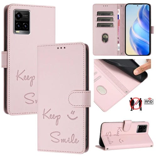 Funda de Cuero Rfid con Relieve Sonriente para Vivo Y21 2021 / Y21S / Y21T (Rosa)