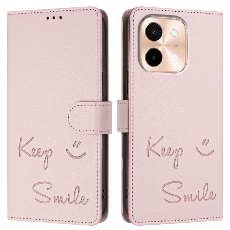 Funda de Cuero Rfid con Relieve Sonriente para Vivo Y28 4G (Rosa)