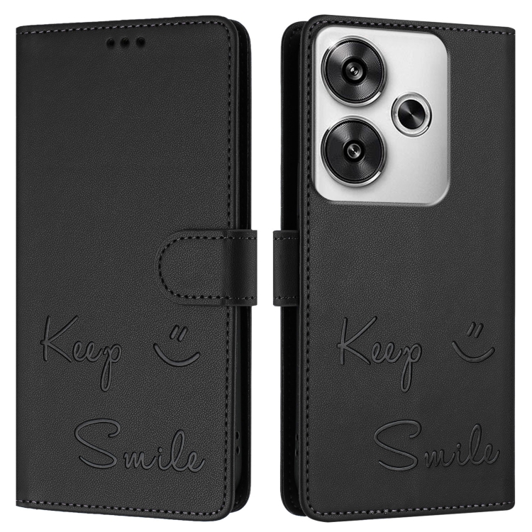 Funda de Cuero Rfid con Relieve Sonriente para Xiaomi Poco F6 5G (Negra)