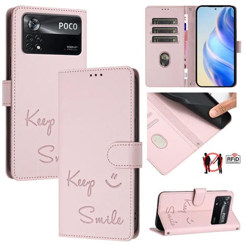 Funda de Cuero Rfid con Relieve Sonriente para Xiaomi Poco X4 Pro 5G (Rosa)