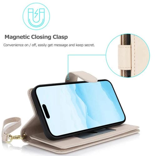 Funda de cuero RFID con tarjetero para iPhone 17 (albaricoque)