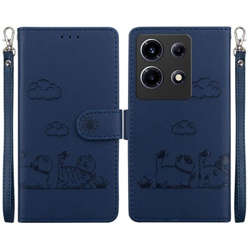 Funda de Cuero Rfid para Teléfono Infinix Note 30 Vip con Lindos Gatos (Azul)