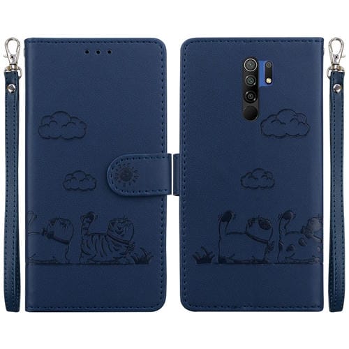 Funda de Cuero Rfid con Diseño de Gatos para Xiaomi Poco M2 (Azul)